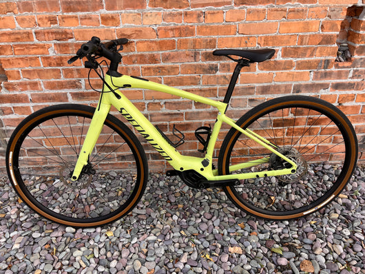 This is a lightly used Specialized Turbo Vado SL 4.0, a premium lightweight e-bike designed for commuters and fitness riders who want responsive handling with just the right amount of assist. Weighing in around 33 lbs, it features a smooth and efficient SL 1.1 mid-drive motor, a fully integrated 320Wh battery, and an 11-speed SRAM NX drivetrain with a wide 11–42t cassette for versatile riding. The E5 aluminum frame is sleek and durable, paired with hydraulic disc brakes, 700x40c tires, and integrated front and rear lights for safety and convenience. With its minimalist design, internal cable routing, and thoughtful commuter-ready touches, this Vado SL 4.0 rides like new and has been well cared for, showing only minimal signs of use. It’s a smart, stylish e-bike that blends performance, practicality, and clean design.